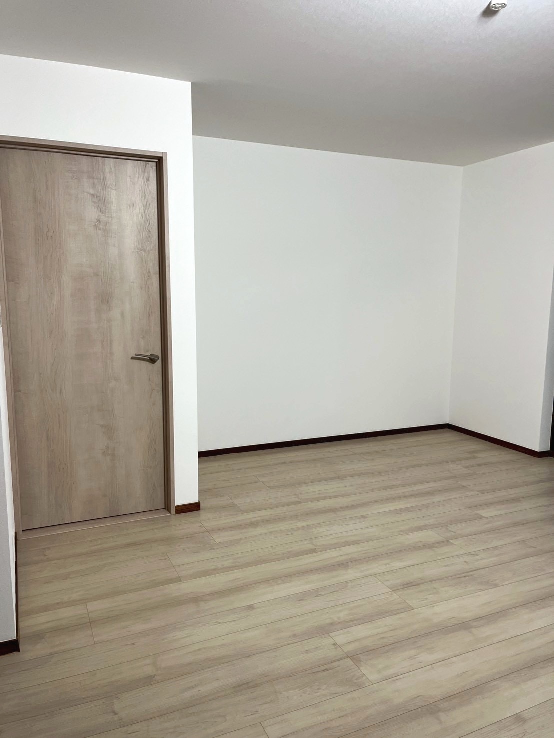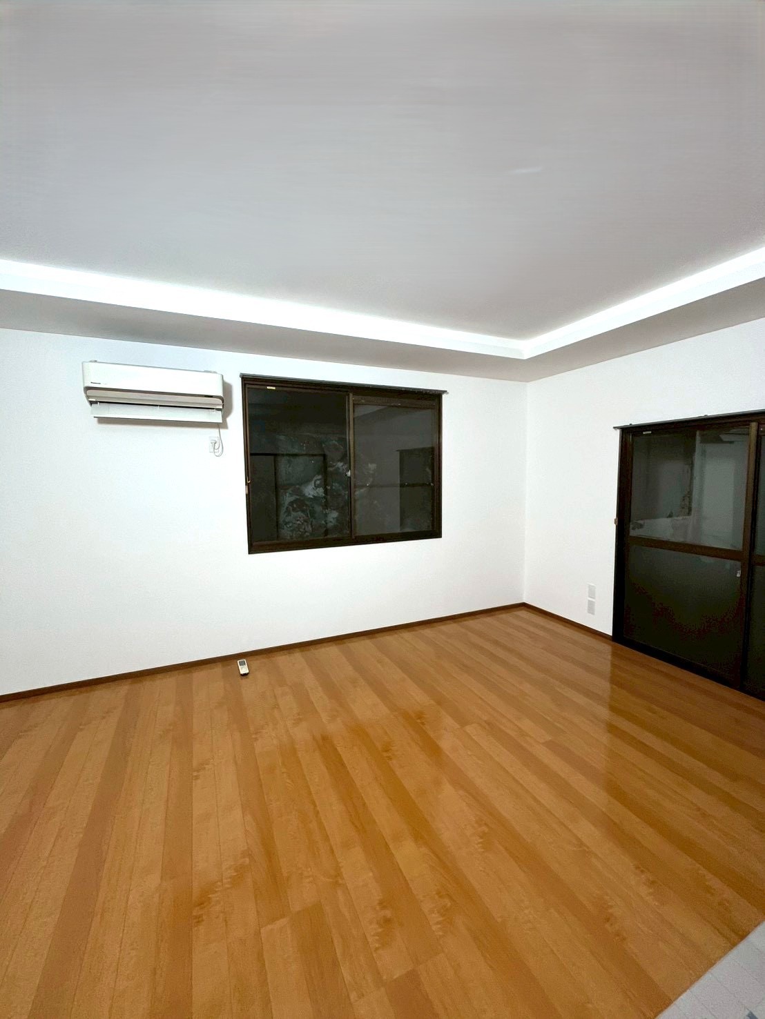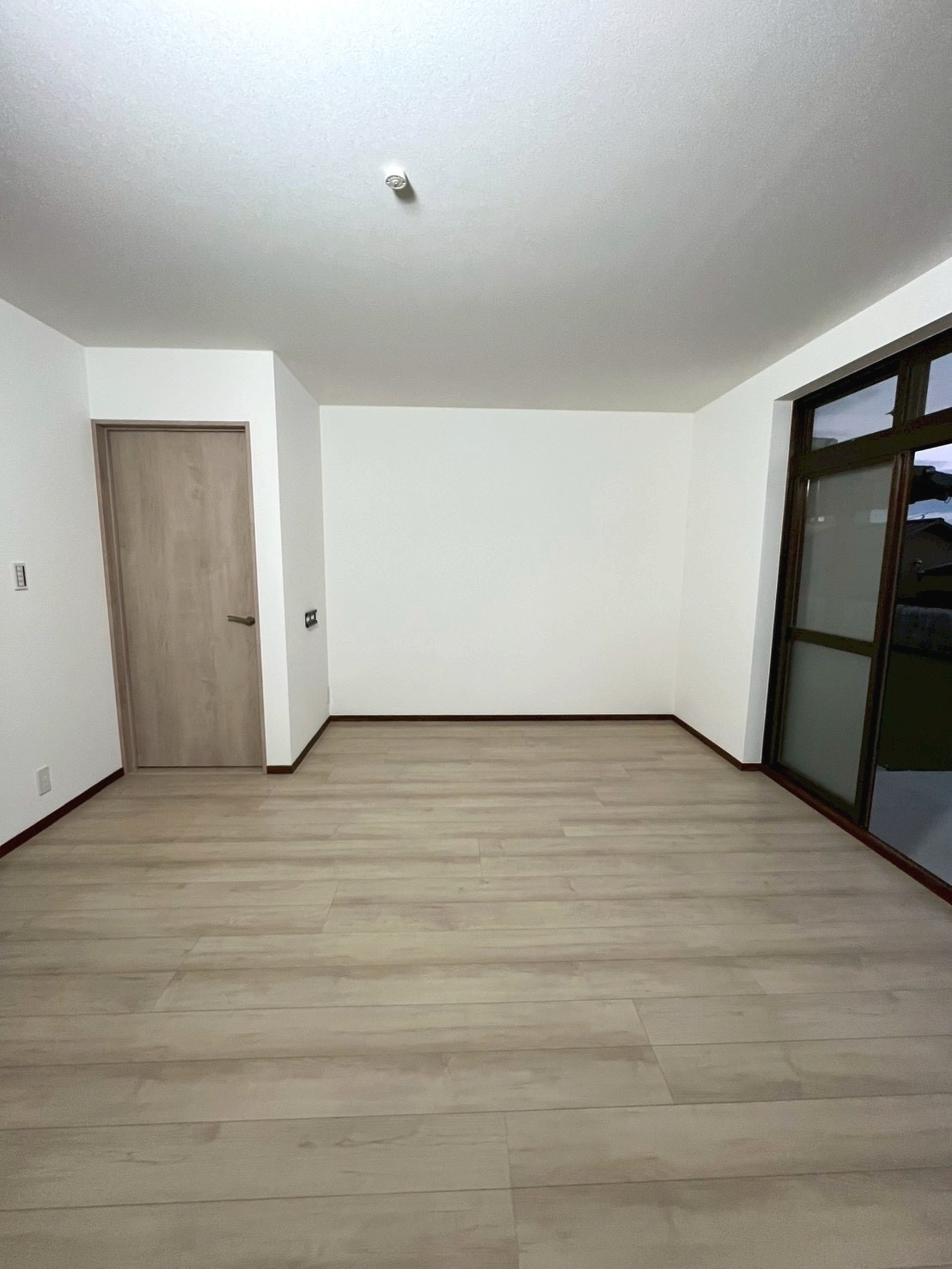 一部屋目は、押入れのある和室をリビングとして使える洋室へリフォームしました。畳を撤去し、グレージュカラーのフローリングへ張り替え。押入れは解体して空間を広げ、建具も床のトーンに合わせて新しいものへ交換しました。壁のクロスはホワイトに張り替え、明るくすっきりとしたリビング空間に生まれ変わっています。