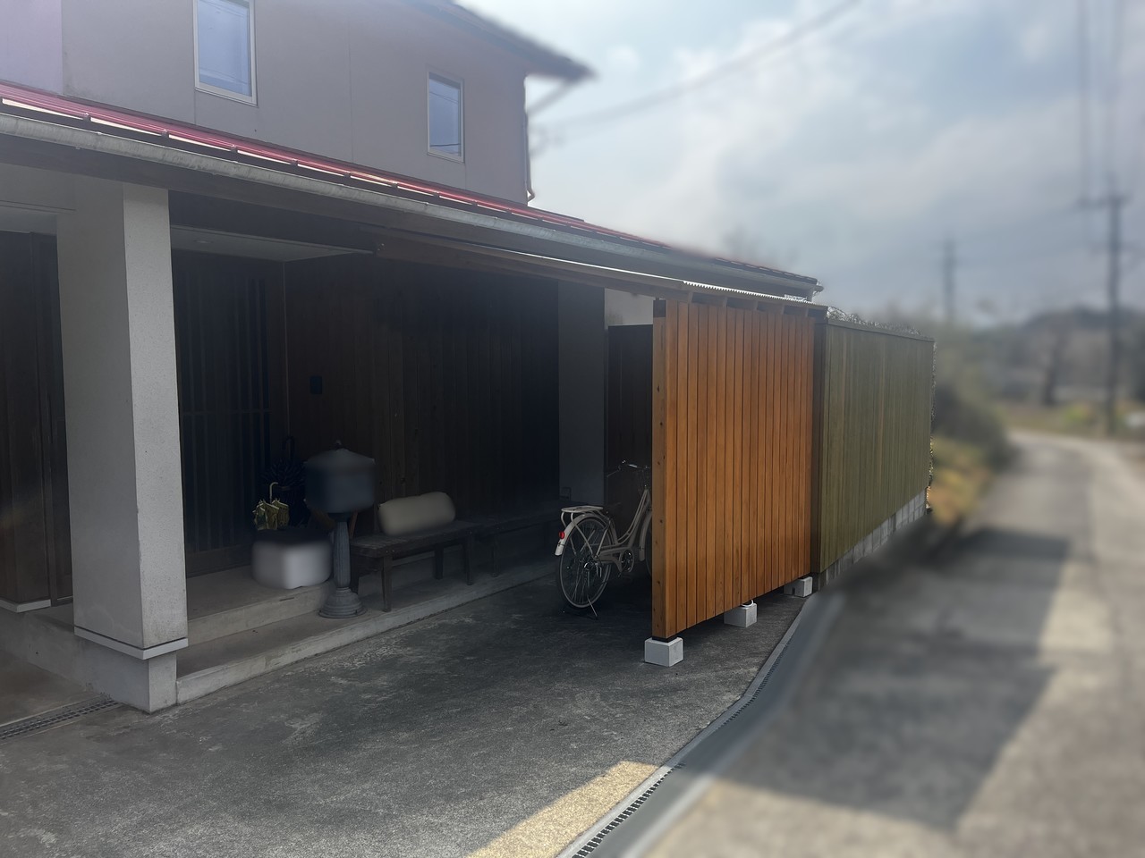 今回の工事では、不要な門を撤去し、手前部分はコンクリートを打設。広々とした駐車スペースへと生まれ変わりました。車の出し入れがしやすくなり、日常の使い勝手が大きく向上しています。