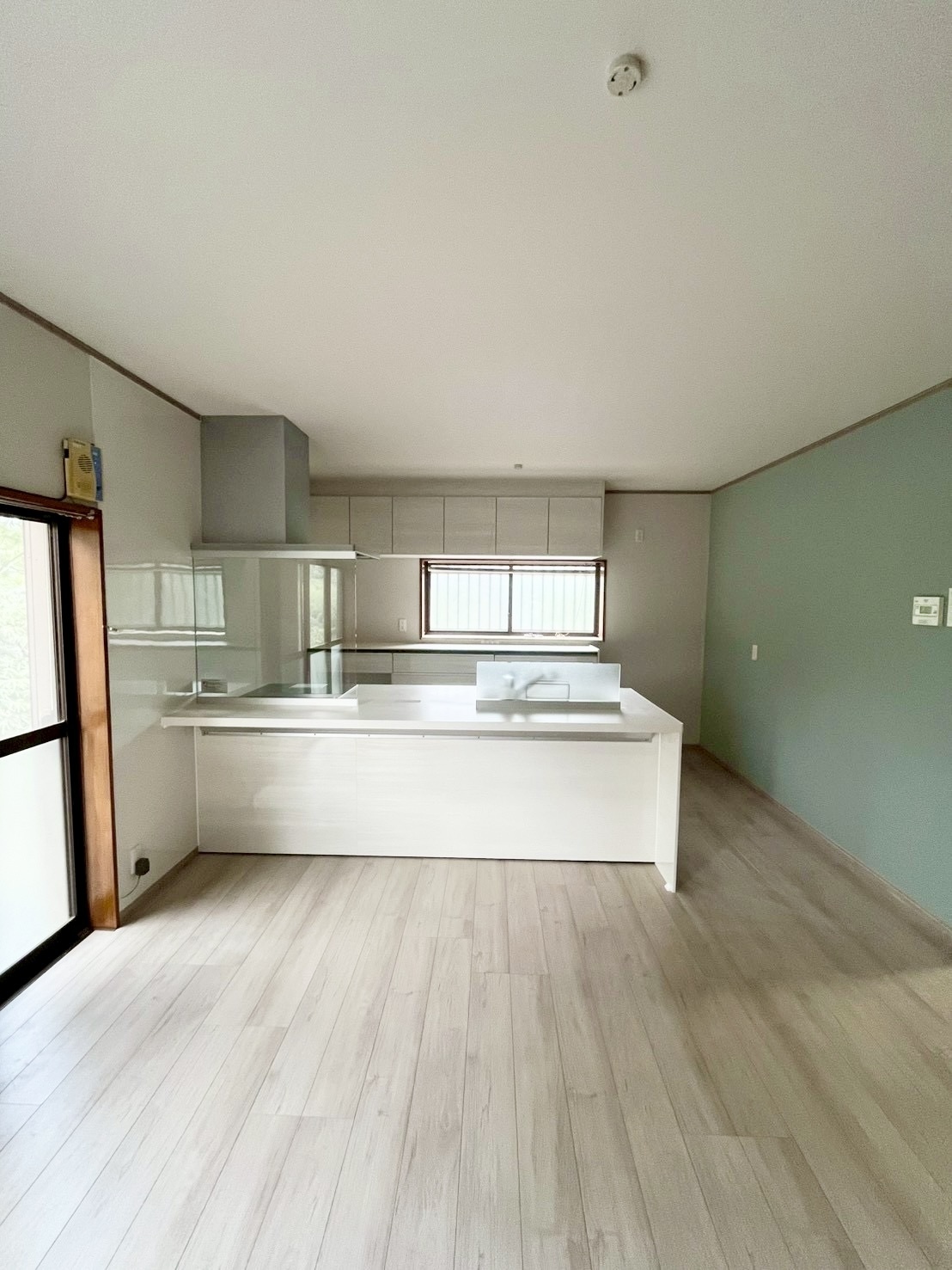 家族の顔がみられる北欧風でおしゃれな対面式キッチンにリフォーム!機器はすべてリクシルのホワイト系でまとめました。
