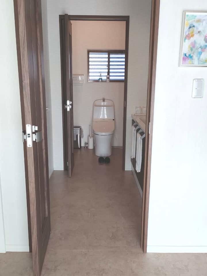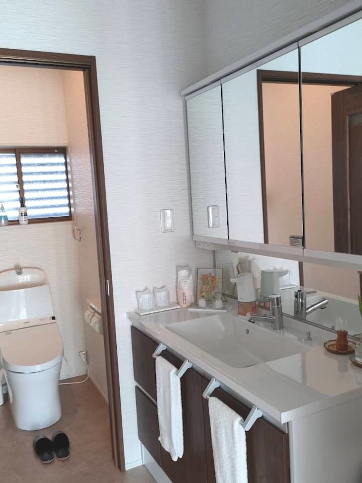 生活動線を整理することで、複数人でも使いやすく、プライバシーにも配慮した水まわり空間へと生まれ変わっています。宿泊される方が国籍や人数を問わず、心地よく過ごせることを大切にした民泊リノベーション事例です。