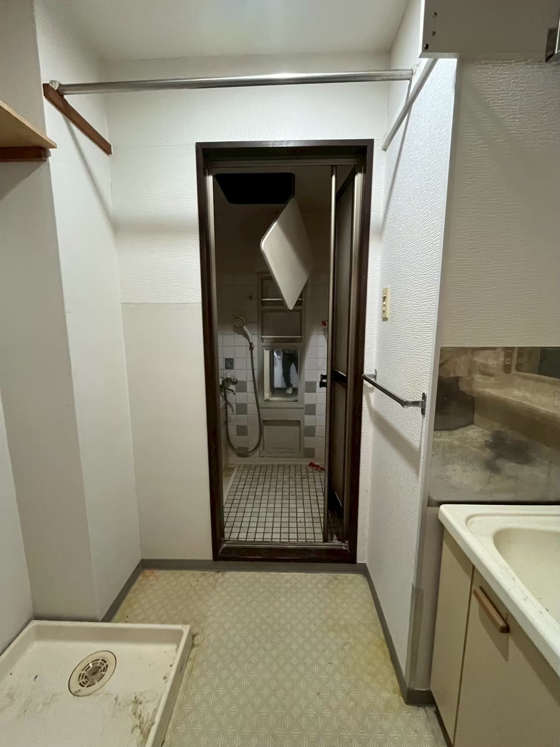 壁はそのまま既存を残し、床はお手入れのしやすさを考えて木目調のクッションフロアを採用!